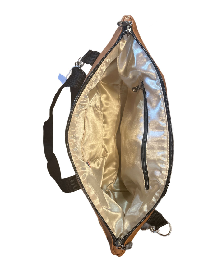 sac vogue en simili cuir marron anse épaule et bandoulière amovible , à l'intérieur 2 poches 1 plaquée et 1 avec zip.